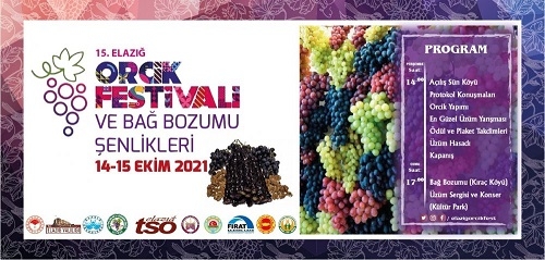 14-15 Ekim tarihleri arasında 15. Elazığ Orcik Festivali ve Bağ Bozumu Şenlikleri düzenlenecek.