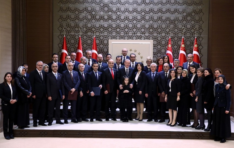 Ödül töreni sonrası Cumhurbaşkanı Recep Tayyip Erdoğan, ödül alan Öğretim üyeleri ile birlikte hatıra fotoğrafı çektirdi.